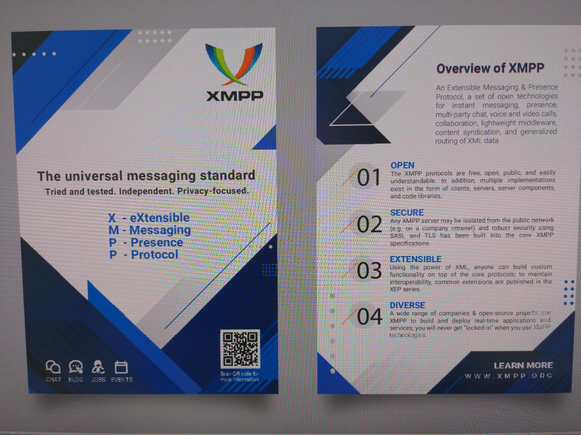 > Last year at FOSDEM, we had that blue/white A5 leaflet on XMPP as a handout. I don't know if we had any left? Shall I have a couple more printed?